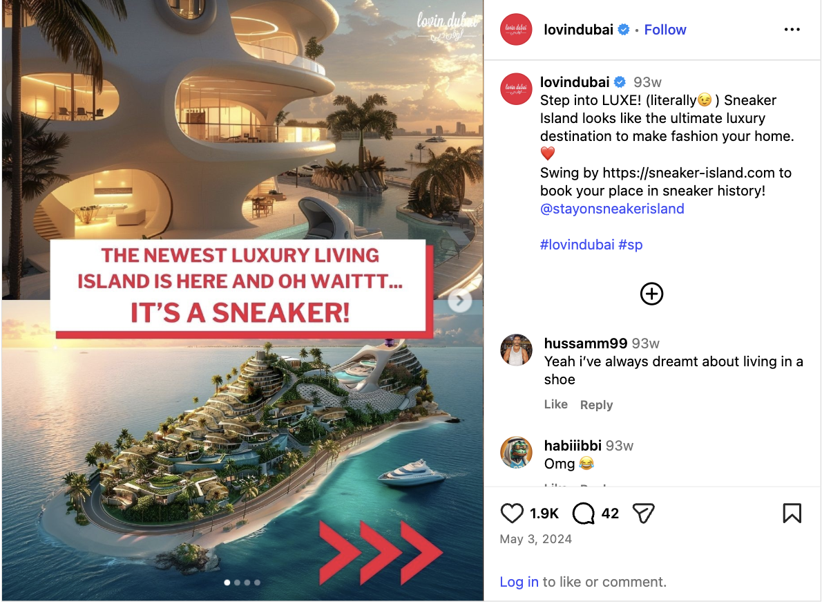 Co-created with a Creative Director, Sneaker Island transformed product into destination. With Dubai being known for crazy real estate ideas an island shaped like a sneaker didn’t seem so far fetched, and the media lapped it up, to the point real estate agents were reaching out trying to get first dibs on the new development.